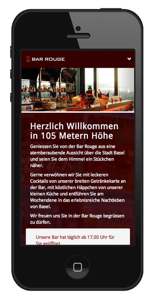 Die Bar Rouge verfügt nun über eine Plattform, auf der sie Emotionen mittels grossflächiger Fotos kommunizieren kann. Die Webseite wird auf allen internetfähigen Geräten optimal dargestellt, und lädt zum Verweilen ein.