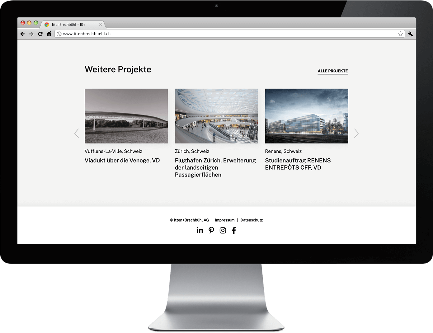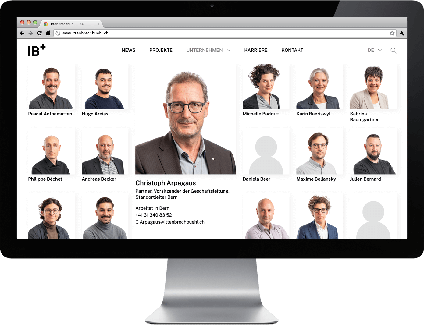 Die umfangreiche Palette anspruchsvoller Bauprojekte und kompetitiver Wettbewerbe lassen den Besucher in die Welt von IB eintauchen. Abgerundet wird die digitale Präsenz durch die interaktive Team-Übersicht der Mitarbeitenden an 7 Standorten.