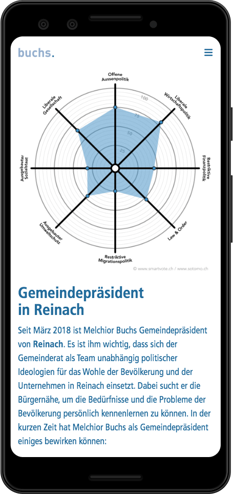 Die neue Personal Website wurde auf Bootstrap-Basis mit einem Responsive Design konzipiert und realisiert. Eine tragende Rolle übernehmen dabei die grossflächigen Intro-Videos, die Melchior Buchs in typischen Alltagssituationen zeigen.