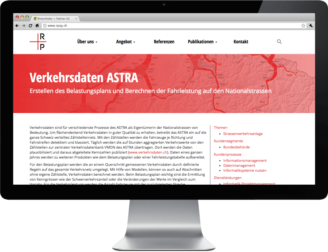 Unter Berücksichtigung des neuen Leitbilds soll ein neuer Webauftritt für die Rosenthaler + Partner AG entstehen. Eine logische und übersichtliche Navigation soll den Besucher mit wenigen Klicks ans Ziel bringen.